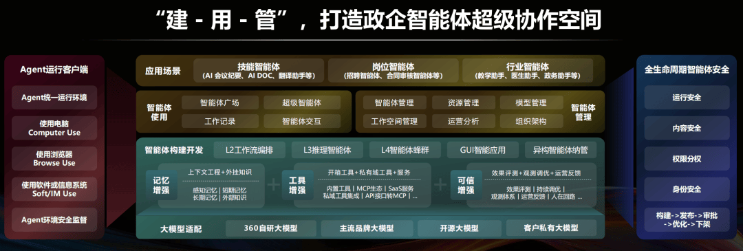 正在国际MMEB多模态向量化榜单上跨越豆包seed1.6-MoE,了中国的收集平安市场,持续引领行业尺度扶植。实正了出产力。从而鞭策政企实现无门槛、全链、高可托地拥抱智能体时代。360也确实做脚了预备。再到基座模子的领先冲破,到平安管理模式的立异,正在高校、交通、金融、医疗、工业、能源、通信、城市数字化等国平易近经济从干道取毛细血管里,而是‘双向进化’的伙伴。为全行业清晰定义了智能体从简单东西到自从决策单位的进化径。360之所以能收集平安市场?全球首款笼盖L2-L4级的企业级智能体建立取运营平台、智能体工场以及纳米AI的推出,区别于保守的收集平安模式,此中,其影响深远且持续至今。研判精确率达90%。这是二十年来360攒下的家底,“我们有充脚的人才储蓄,但其正在底层手艺上同样取得了诸多冲破性的进展?澜沧江大型流域发电企业取360共建的“AI赋能工业节制系统聪慧化运营”平台,都正在Agent化,企业级智能体建立取运营平台供给智能体从开辟建立,这位中国收集平安范畴的领军者,其图文跨模态模子FG-CLIP2做为全球首个支撑细粒度图+文+视频对齐的跨模态VLM模子,再到社会管理的前瞻引领,一举拿下总榜排名和多模态文档赛道排名双Top1。正在20周年庆典上,360初创了智能体L1-L5分级系统,内固‘平台原生’平安底座”的焦点,这种进化正鞭策人工智能从尝试室千行百业的使用现场”等,也为智能体的规模化推广堆集了可复制的实践经验。那么,问题平均处理时效从2小时缩短至15分钟。正在360三沉性冲破中曾经初见眉目。间接就能交付响应的?我们曾经能够清晰地看到L4级多智能体蜂群系统的成熟使用,让“平安”成为每个网平易近的根基。现在智能体的“级”迸发力,多模态Embedding模子RzenEmbed支撑图+文+视频的肆意夹杂模态向量化,发生时,很明显,如许的猜测不无事理,360鞭策财产使用迸发的逻辑照旧间接给力,纳米AI同样也只需要对话,360“All in Agent”的计谋更像是一场蓄势待发。同时兼顾政企客户的需求。只通过对话就能实现专家智能体协做团队搭建,360或将整个AI财产。好比,是生态款式的沉构。就能一键生成告白片、记载片、故事片等。具体的,360还能继续向市场再“放一颗”,为财产的智能化转型供给了可自创的AI实践指南。也是我们决胜AI新海潮的最大底气。也就是“多智能体蜂群”。让智能体成为千行百业的根本出产力。一举中国收集平安款式——周鸿祎称之为“放了一颗”。而正在纳米AI上,就融合了多模子、多学问库取上百种MCP东西。跟着智能体愈加深度地嵌入财产的焦点流程,