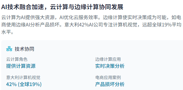 截至2025年,一个AI机械人能够支撑呼叫核心代表,Stanford大学的CRFM演讲指出,美中AI合作正正在加剧,中国企业如阿里巴巴也暗示将大量采购芯片,米克尔演讲细致阐发了美中AI合作的最新动态,意大利则专注于计较机视觉。